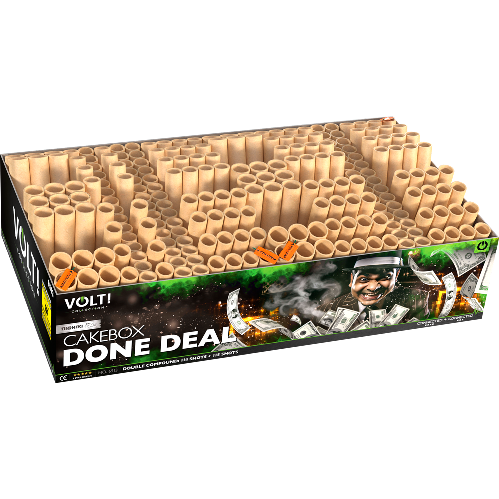 | Effektbeschreibung | Fast 2 Minuten lang ein komplettes Feuerwerk in deiner Nachbarschaft. Mit diesem Doppelverbund von VOLT! bist du der König der Straße! Sowohl in I-Form als auch in Fächerform. Geschossen in Salven und Einzelschüssen in einem schönen Aufbau bis zum fulminanten Finale. 229-Schuss-Straßenkiste! |